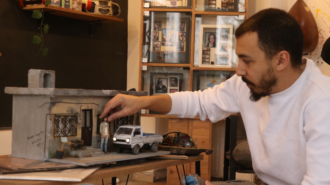 Kentte yaşayan Çağatay Postacı, pandemi döneminde üniversite öğrenimi gördüğü sırada ‘diorama’ sanatına ilgi duydu. Bu alanda kendini geliştiren Postacı, çeşitli malzemelere şekil vererek ev, araç, çaydanlık, soba, radyo, gibi minyatürler yapmaya başladı.